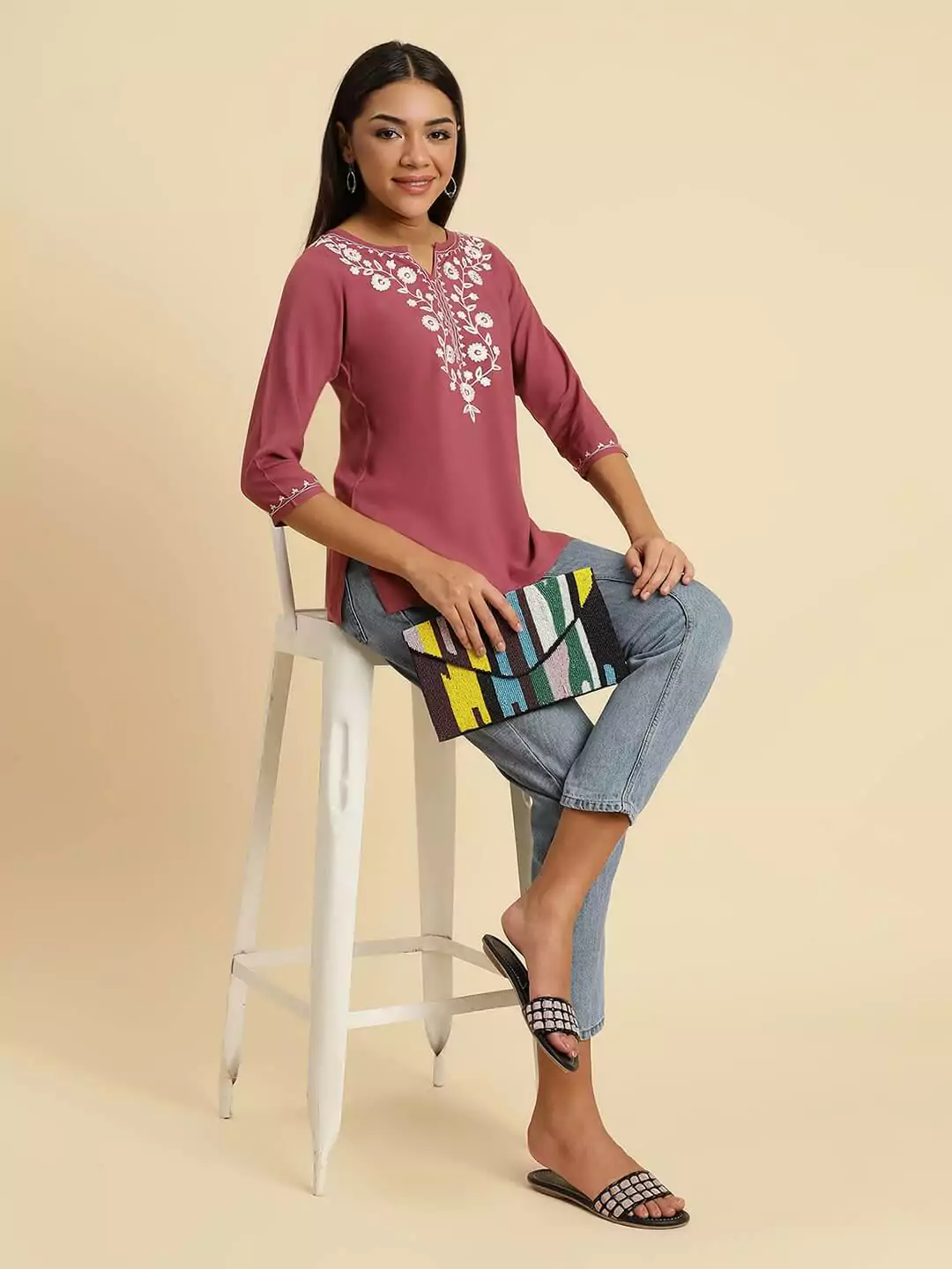 Pink Kashmiri Silk Work Short Kurti
