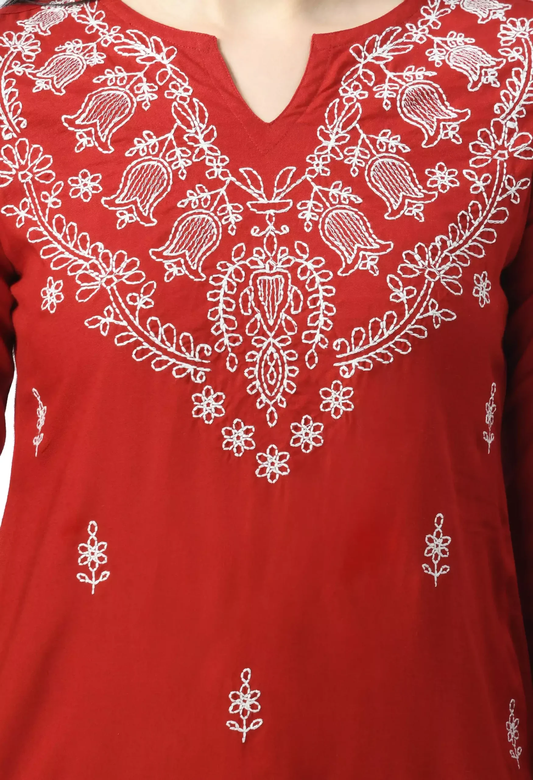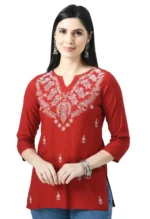 Red Chikankari Short Kurti