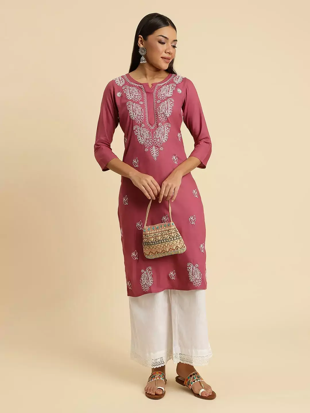 Wild Orchid Pink Chikankari Kurti